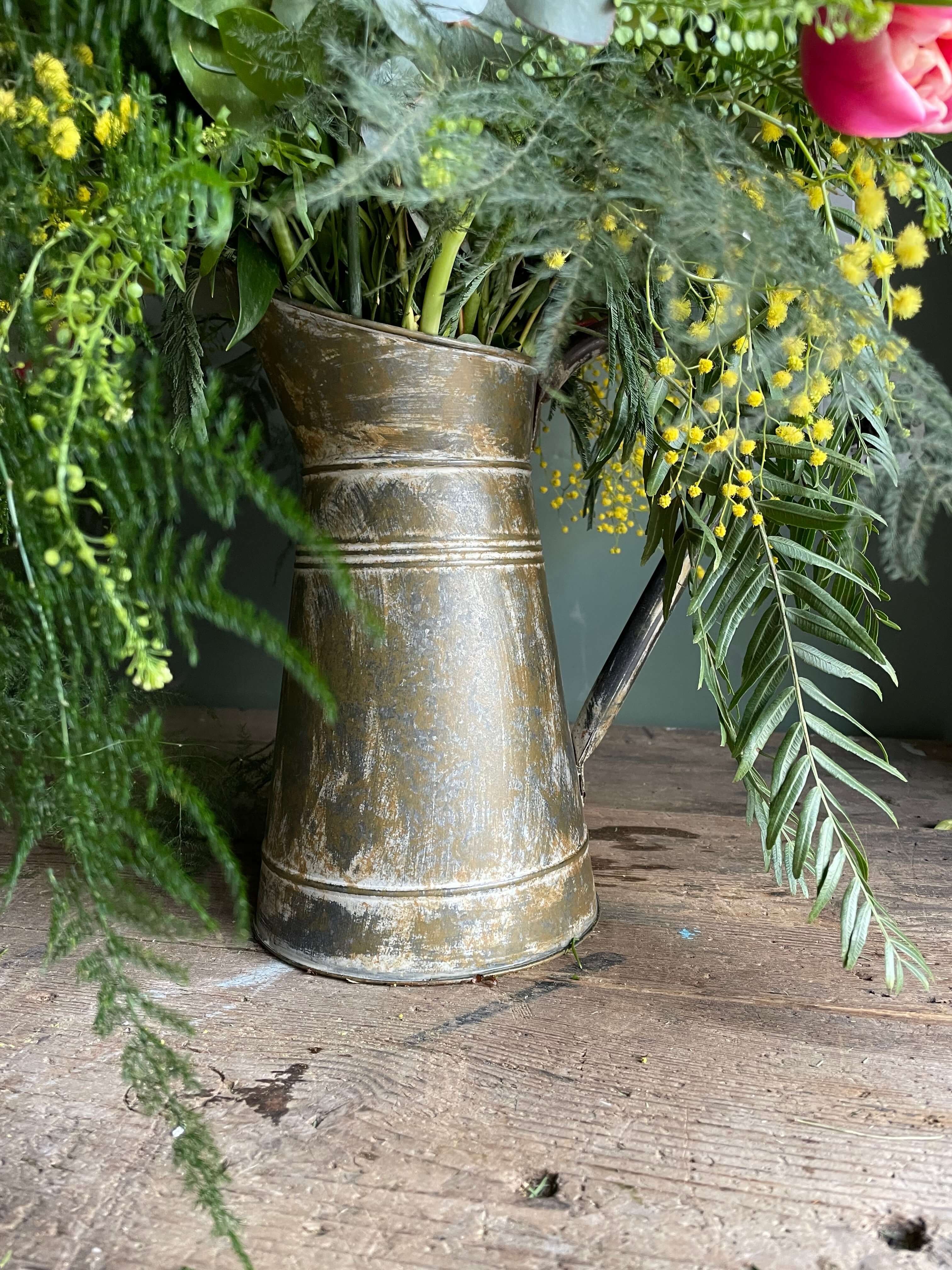Arreglo en jarra metal antigua