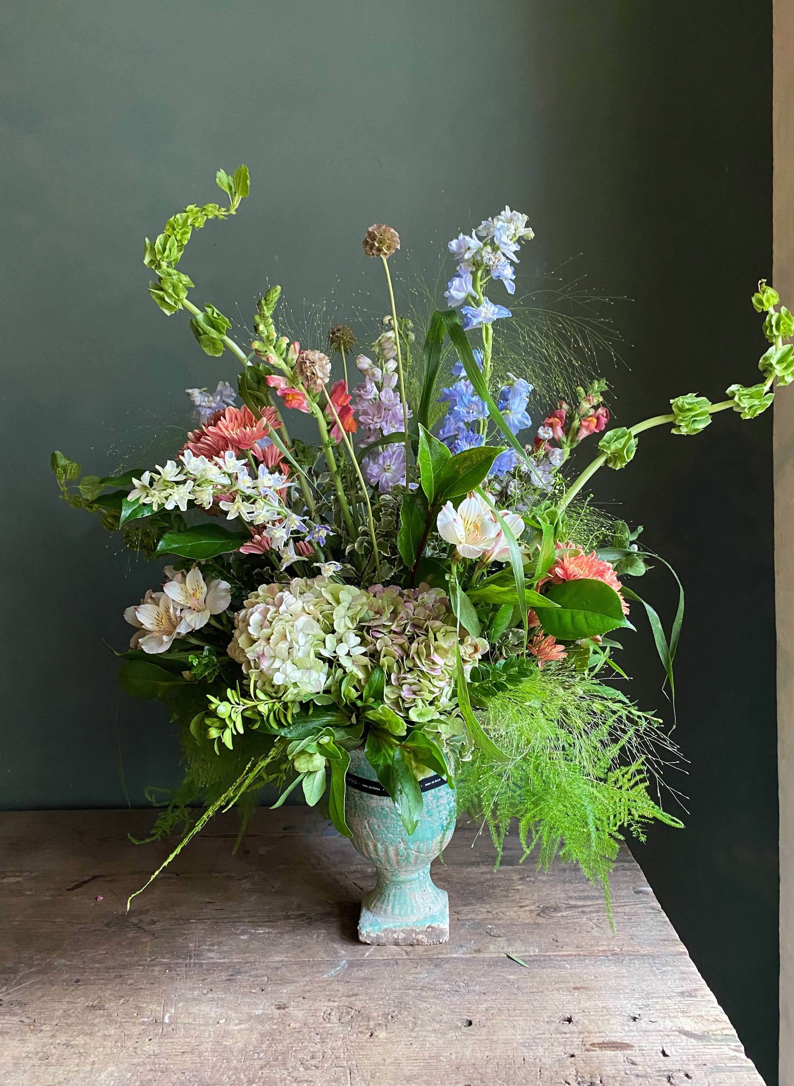 Arreglo en cerámica azul flores